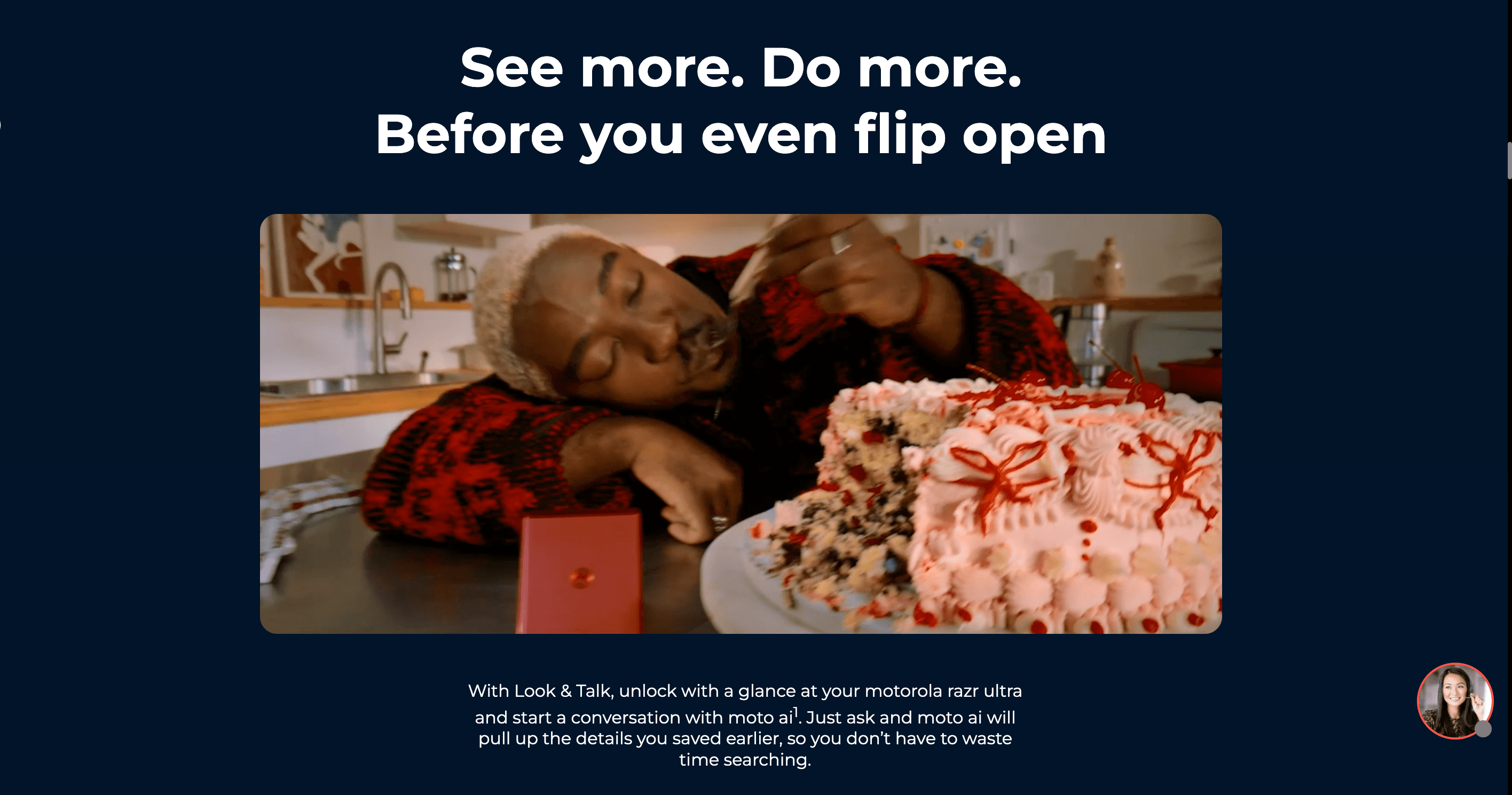 Feature storytelling that focused on lifestyle benefits rather than specs, turning Flex View, the external display and AI camera into expressions of personality and motion